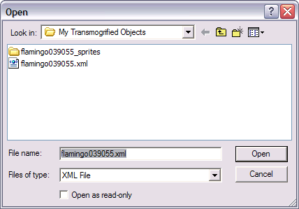 then select the corresponding XML file "flamingo813554.xml" that you previously exported: